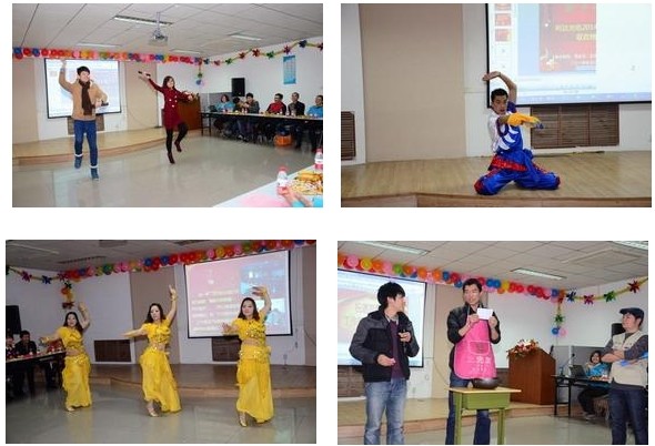 ????? 晚會現(xiàn)場雖然比較節(jié)儉,卻處處洋溢著喜氣洋洋的和諧氛圍。晚會內(nèi)容豐富多彩,包括歌曲、戲曲、舞蹈、小品、魔術(shù)、男女對唱、武術(shù)等十五個節(jié)目,給全體觀眾們帶來了一場美妙的視聽盛宴。一首合唱歌曲《猜》拉開本次晚會的帷幕;熱辣,奔放的西班牙之夜、印巴熱舞給大家?guī)У搅水悋橛?;根?jù)公司文化改編的小品《找工作》妙趣橫生,耐人尋味,迸發(fā)出積極向上的正能量;武術(shù)表演懸念頓生,豪氣沖天;歌曲《暗香》、《猜》演繹了情深意長、溫馨浪漫的真摯情感;詩朗誦《咱們工人有力量》,節(jié)目巧妙運(yùn)用詩朗誦獨特的語言藝術(shù),謳歌公司發(fā)生的變化和取得的輝煌成就,歌頌了利達(dá)人的敬業(yè)精神、團(tuán)隊合作精神,真情流露,感人肺腑,讓在座的觀眾贊嘆;小品《胡導(dǎo)》以其詼諧幽默的語言、滑稽搞笑的到位表演的藝術(shù)表現(xiàn)形式更是笑爆全場;更有郭富強(qiáng)表演的魔術(shù)和蔣麗的戲曲表演,讓我們領(lǐng)略了利達(dá)人別樣的激情與風(fēng)采。抽獎活動穿插期間,將聯(lián)歡會氣氛一次次推向高潮。