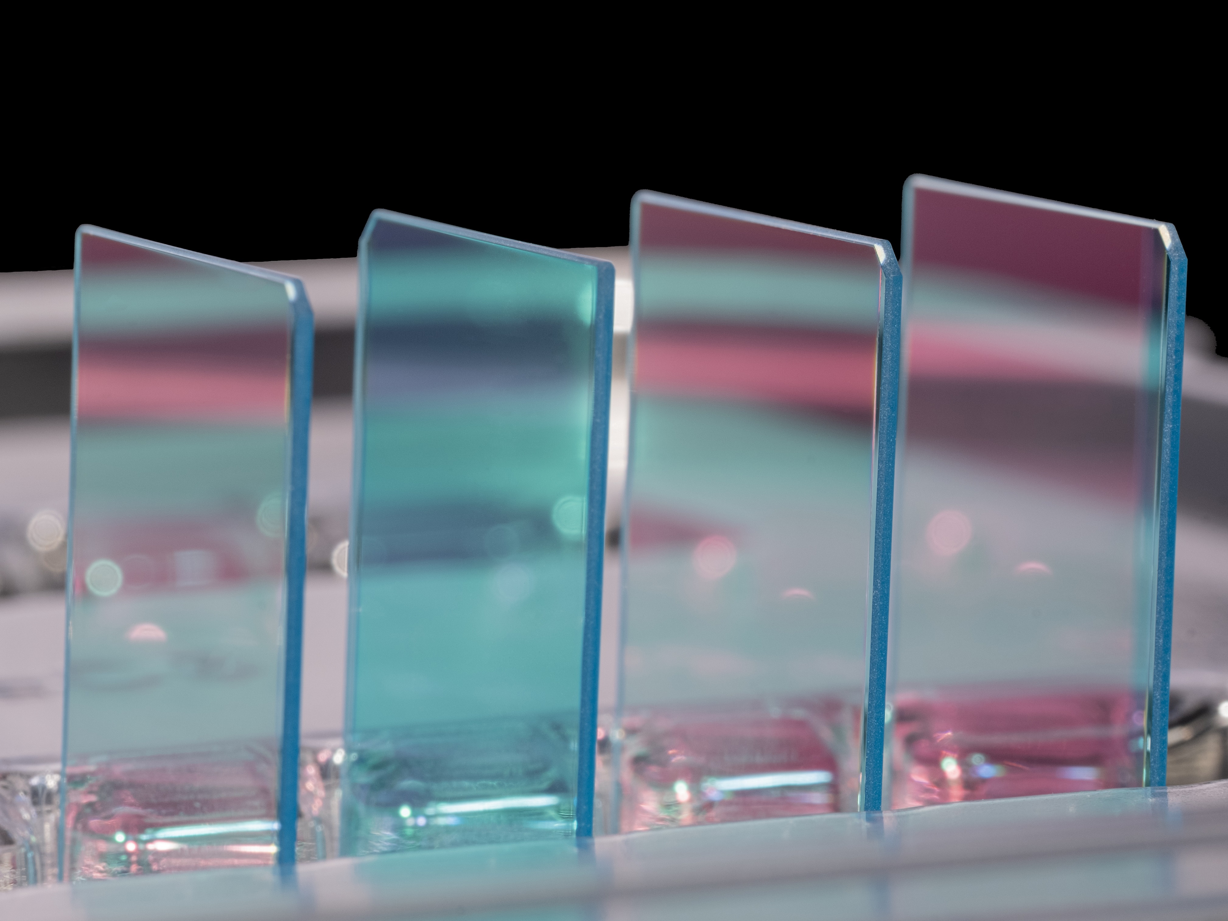 水晶藍玻璃膠合品特征: 具有水晶的雙折射功能和藍玻璃的抗角度功能的水晶與藍玻璃膠合品被廣泛使用在單反相機..